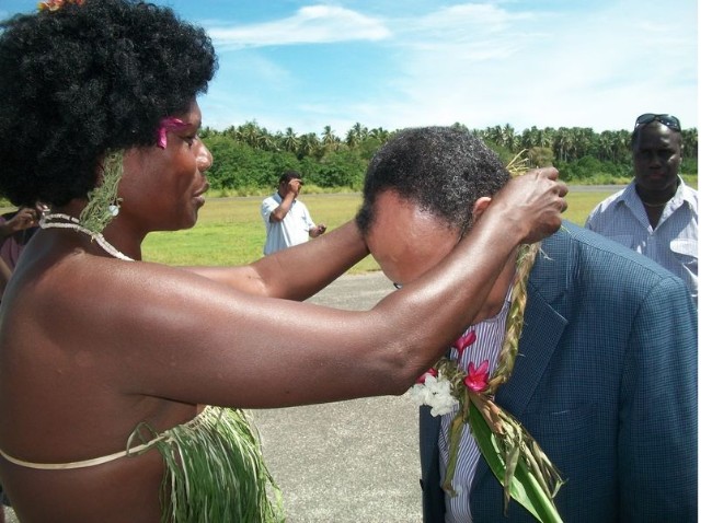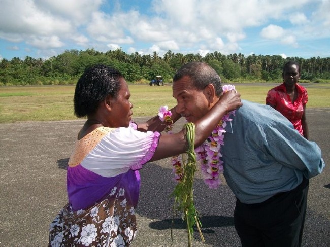 PNG Minister Peter O'NEILL welcomed at the Buka airport.