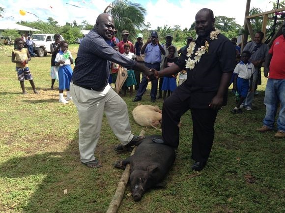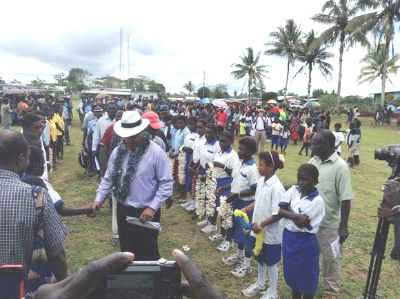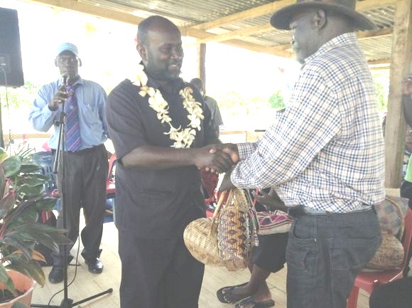 Presentation time Bougainville Affairs Minister Steven PIRIKA presenting Ray Paul in Buin this afternoon.
