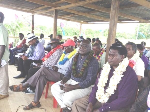 Leaders on stage, Bougainville Regional Member JOE LERA,JOEL BANAM ABGminister for public services, JOEL BANAM and Bougainville Affairs Minister STEVEN PIRIKA and Fred KONGA BDA executive chairman