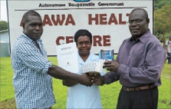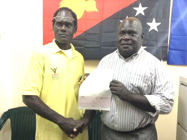 Pictured is the Board Chairman Benedict Pekah receiving the cheque from the Member in Buka this morning.