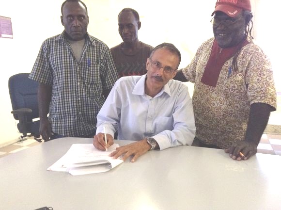 The local ABG member for Eivo/Torau Melchior Dare and three other Ministers, Minister for lands, MICHAEL ONI and Minister for Primary Industry NICHOLAS DARKU were present yesterday for a official signing of a MOU with the landowners to allow the project to move forward.