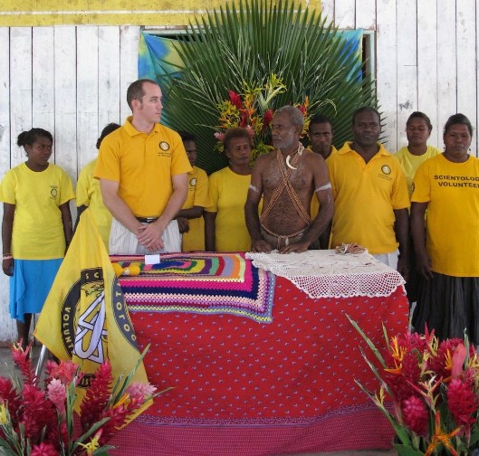 The Waru Panpipe Band and the Kakona Traditional Group performed traditional songs and dances and guests toured the traditional hut built for the occasion at Town Ground, and Mathew Andrews, leader of the Scientology Volunteer Ministers Goodwill Tour, gave an overview of the program with specific examples to illustrate the 19 topics the group will cover in the seminars-including how to communicate and understand others better; how to improve one's standard of living; solutions to alcohol and drug abuse; how to improve the ability to study and learn; what makes a successful marriage; and how to be an effective leader.